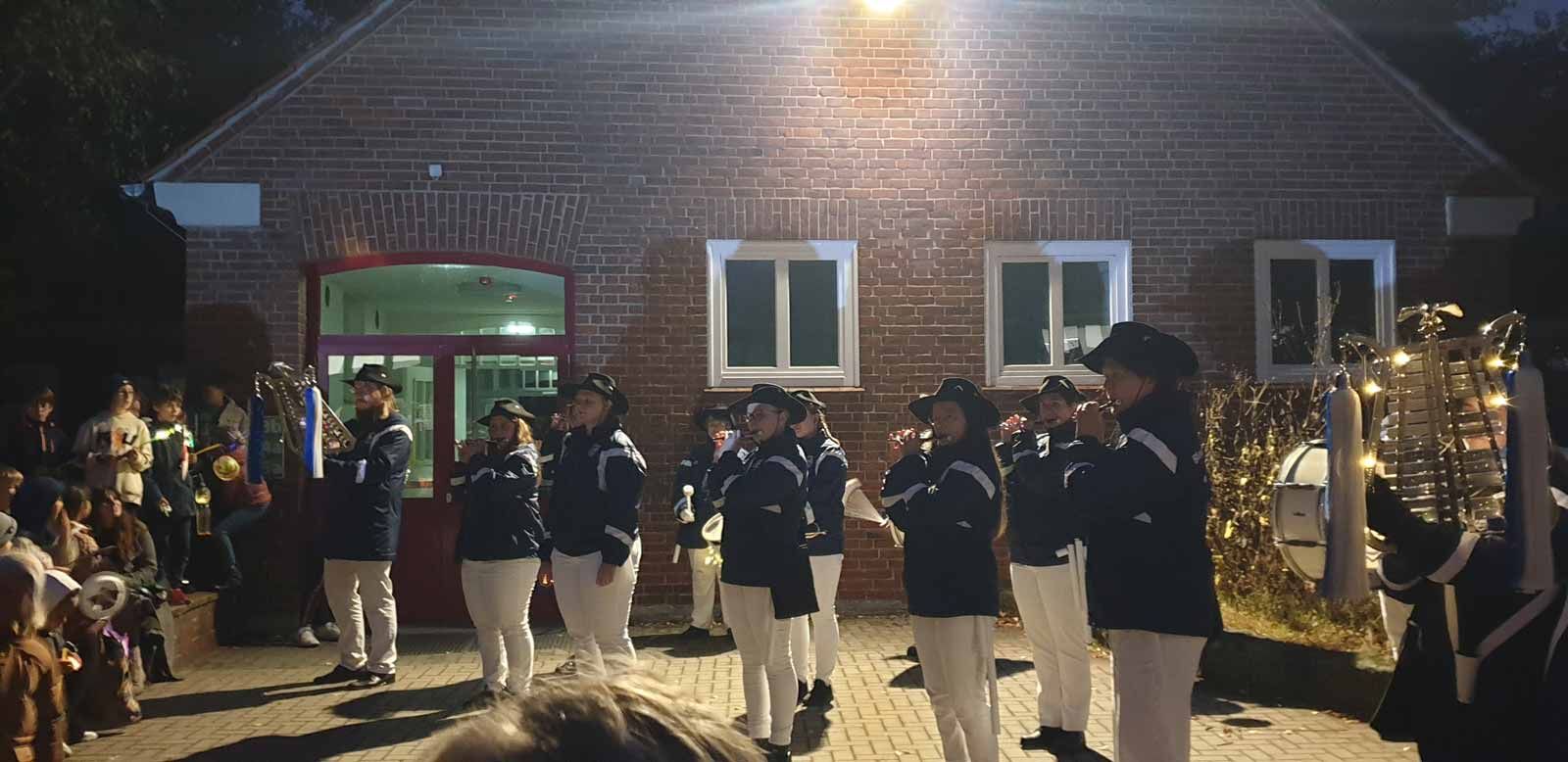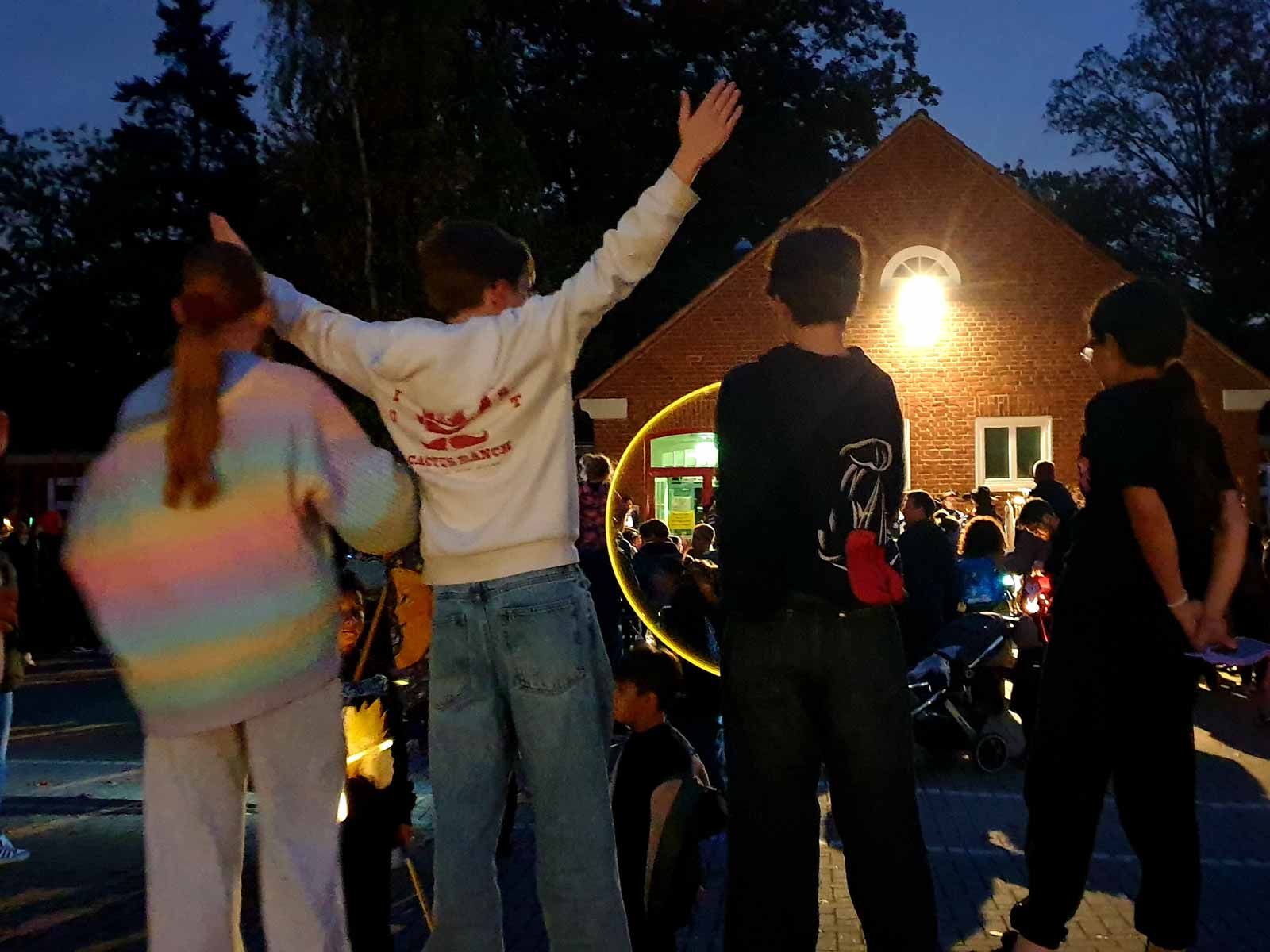 Später wurden am offenen Feuer fleißig die geübten Laternenlieder gesungen, die gebastelten Laternen stolz präsentiert und mit Freunden gemeinsam das Fest genossen. Als der Spielmannszug erschien, ging es gemeinsam durch die „Gassen“ Iserbrooks. Am Ende gab es – mittlerweile bei vollkommener Dunkelheit – noch einige Hits des Spielmannszuges, die ebenfalls eifrig mitgeträllert wurden. Und so langsam ging diese schöne gemeinsame Aktion zu Ende.